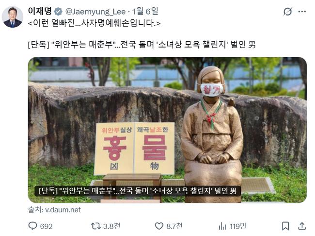 이재명 대통령 X(트위터) 게시글 캡처
