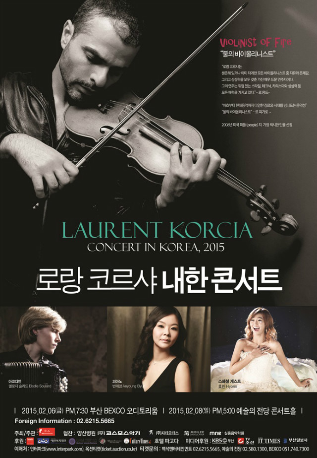 현존하는 프랑스 최고의 바이올리니스트 로랑 코르샤와 한국을 대표하는 섹시디바 효린이 올 2월 6일 부산(벡스코 오디토리움)과 8일 서울(예술의전당 콘서트홀)에서 개최되는 ‘2015, 로랑 코르샤 내한콘서트’에서 파격적인 콜라보레이션을 선보인다.