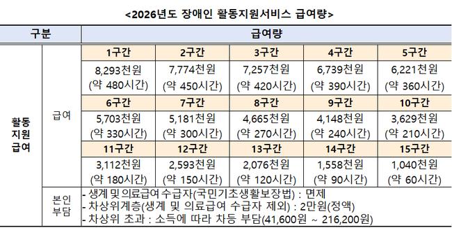 2026년도 장애인 활동지원서비스 급여량