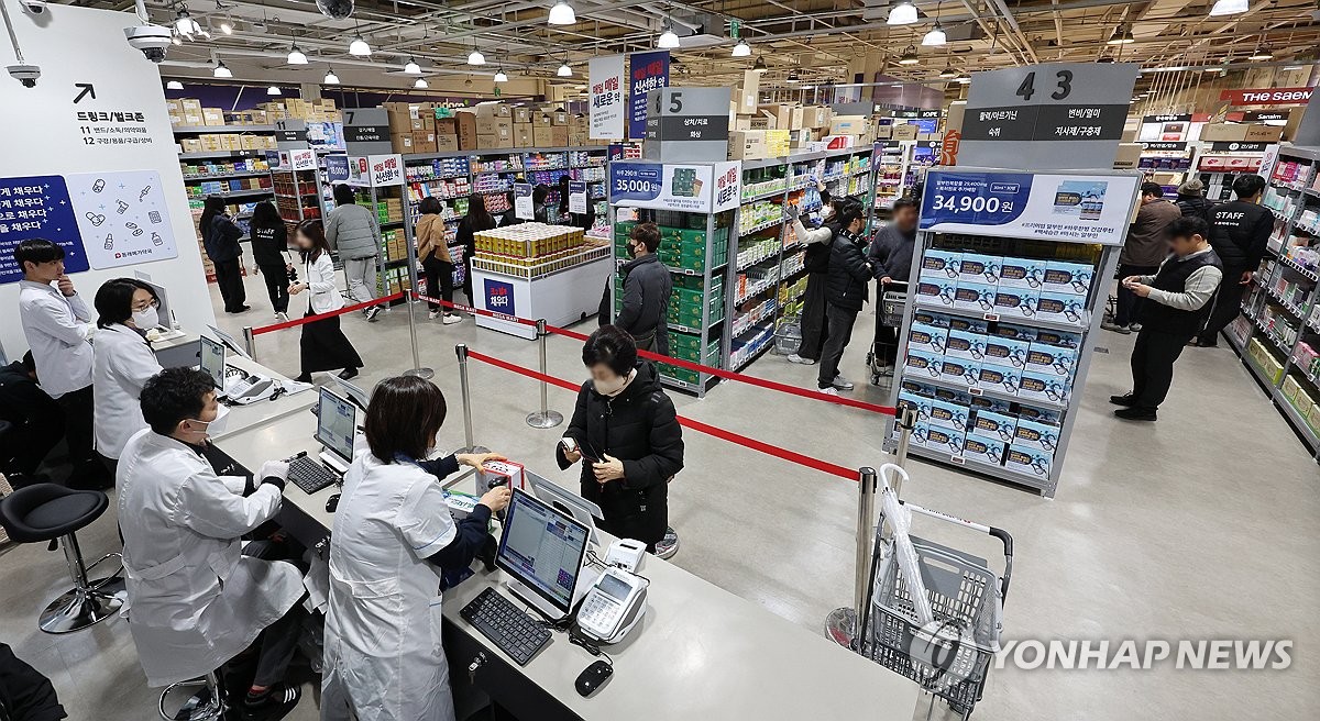 12일 오전 메가마트 부산 동래점에 부산지역 유통업체 최초로 100평 규모 3,000여 종의 일반 의약품 및 건강기능식품 등을 판매하는 창고형 약국인 '동래메가약국'이 입점했다.